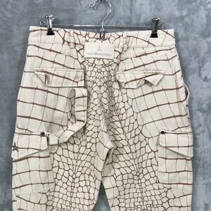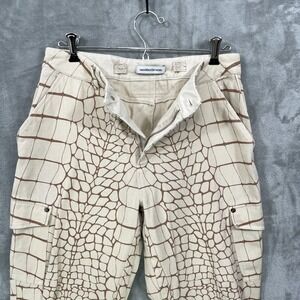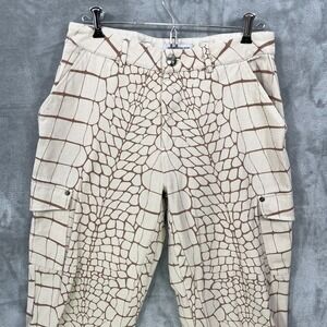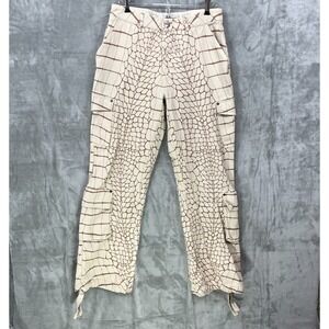 MANIERE DE VOIR Women's cargo Pants Size US 6 Wide Leg Beige Crocodile Print High Waisted Y2K