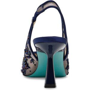 Betsey Johnson Womens Navy Textile Closed Pointed Toe Slingback Nikki Pump