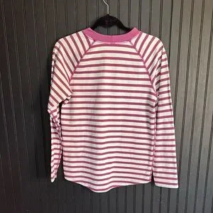 Stylish long-sleeve shirt. Pink and white stripes. Comfortable and durable.