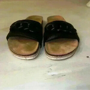 Chunky chain links bring a bold aesthetic to a staple slide sandal set upon a dual-layer cushioned footbed to bring plush comfort to every step.