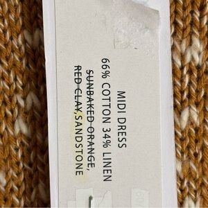 Embrace elegance with this sleeveless sandatone speckled with white dress featuring a delicate feminine bohemian style. Stretchy for comfort and to show your curves. Cotton linen blend. Dress up or down.