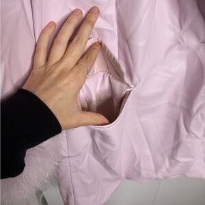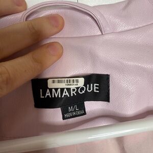 Elegant light pink faux leather jacket by Lamarque. Soft texture and stylish design.