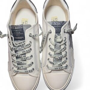 Brand new Chic white low-top sneakers featuring a silver glitter star detail, metallic accents, and branded “VH EST 1954” laces. Canvas upper with a classic rubber sole and silver trim for a subtle statement look. Comfortable, stylish, and easy to pair with casual or dressy outfits. Comes as shown. Great condition with light signs of wear. Perfect everyday sneaker with a trendy Y2K-inspired vibe.