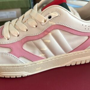 Size 38.5 8.5 US Gucci Re-Web Sneakers White Pink Leather