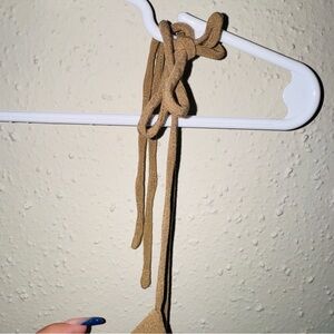 Item is in Great Used Condition. It Features a Bell Bottom Leg with Ruffle Detail Along the Neckline. It also has Adjustable Tie Straps with a Stretchy Band and a Keyhole Detail in the Chest.