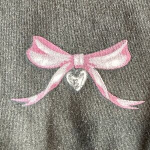 Chic charcoal tee featuring a delicate pink bow. Ideal for everyday style.