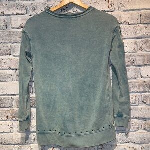 Rock & Republic studded sweatshirt. Cute sleeves really make this. Perfect for layering. It’s lightweight 60% cotton. Distressed collar
