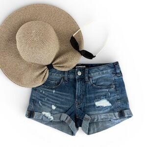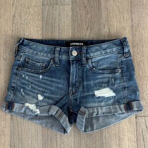 Express Shortie Relaxed Low Rise Shorts - Distressed Denim Size 00