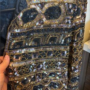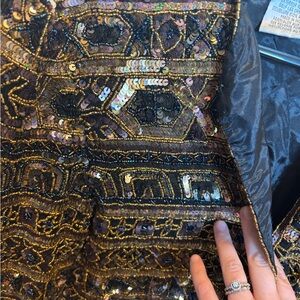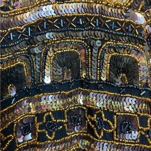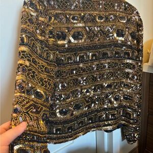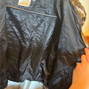 This is a vintage Papell Boutique Evening jacket featuring intricate beadwork and sequins. The jacket is designed for formal occasions, offering a luxurious and eye-catching appearance.