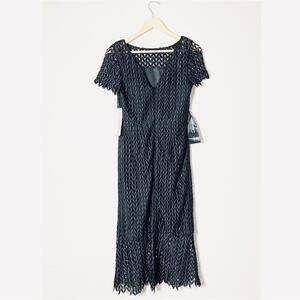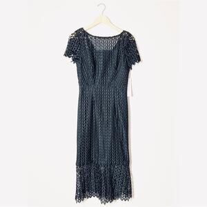 Kay Unger Tatum Floral Lace Midi Dress Black Classic Classy Old Money NWT Size 4