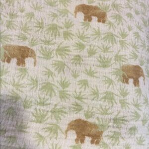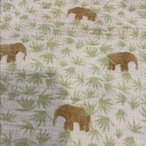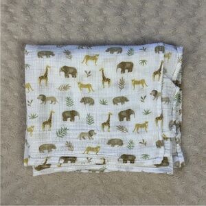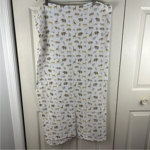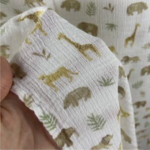 Aden + Anais Set/2 Blankets 100% Cotton Safari Animal /Elephants Muslin Wraps Muslin blanket with safari animal design and MuslinWrap Features elephants and giraffes in tan and green on a white background