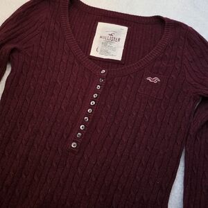 Hollister vintage knit burgundy long sleeve button up henley top