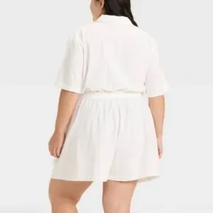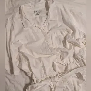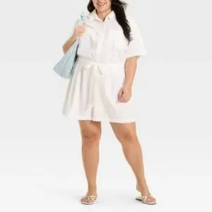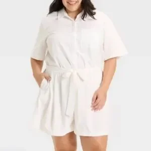 Ava & Viv White Short Sleeve Belted Waist Romper