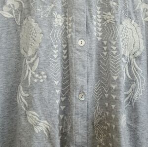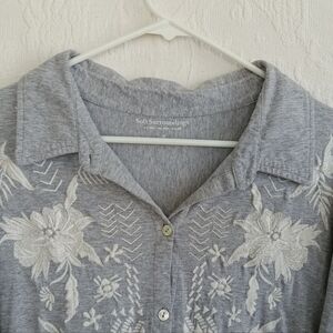 Soft Surroundings Gray Embroidered Button Down Shirt Floral Western Boho Plus 3x