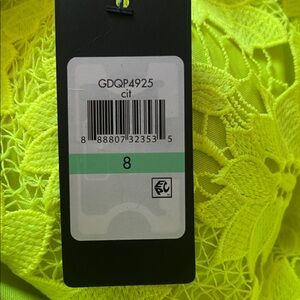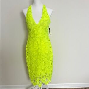 Stand out in this vibrant neon yellow lace midi dress from Guess. This dress combines elegance with a bold color statement.