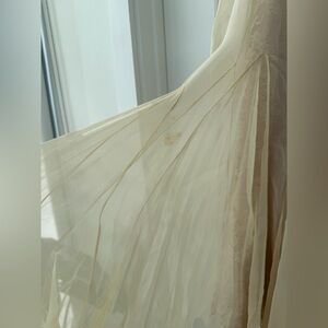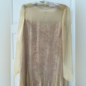 VTG Ivory Silk Chiffon And Lace Illusion Pleated Dress
