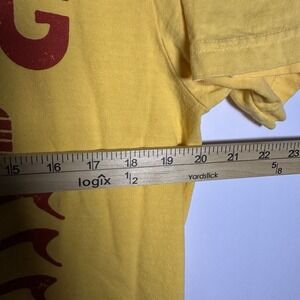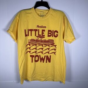 The Little Big Town T-Shirt in Adult Size Large is a vibrant yellow top with a red design on the pontoon. Made of comfortable cotton material, this short-sleeve t-shirt features a crew neck and is machine washable for easy care. The regular fit and basic style make it suitable for casual occasions all year round, whether it's winter, summer, fall, or spring. With the iconic Little Big Town brand, this t-shirt is a playful addition to any man's wardrobe.