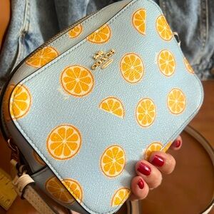 Limited Edition Coach Mini Camera Bag Crossbody With Orange Print