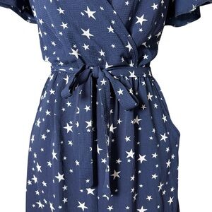 Style tags: celestial, star print, boho, resort wear, vacation, wide leg, wrap jumpsuit, festival