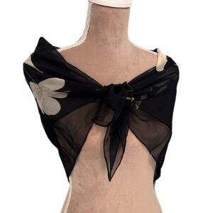 • Style: Sheer black with a large-scale cream botanical/floral print.