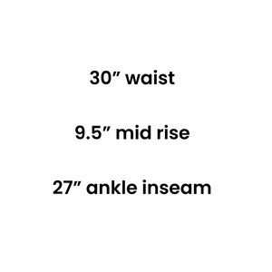 • Inseam: 27” (Ankle Inseam)