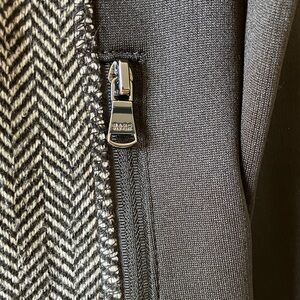 Stylish women's jacket by Marc New York. Features a chic black and gray pattern. Full zip closure with zipping side pockets and large inside pockets. Perfect for versatile wear.