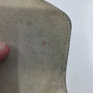 Visible pink stain on the interior suede flap (please see photos).