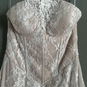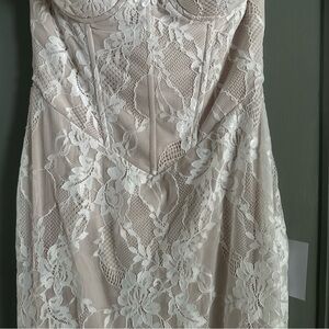 NWT Lulus Valeria White Lace Strapless Bustier Maxi Dress