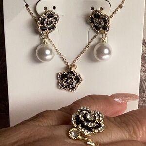 NEW CAMELIA SET Necklace, Earrings & RING OS size