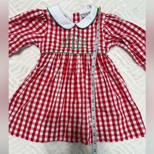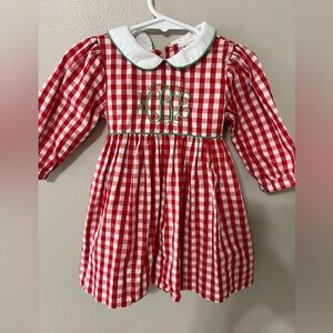 Dressie Jessie Smocking Baby Girl Christmas Dress 12M Red Gingham Monogram EUC