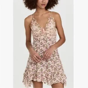 Free People Adella Slip Dress Pink Floral Lace Size S