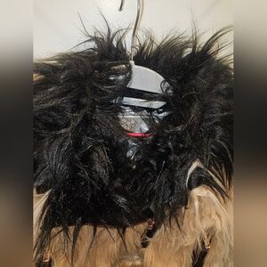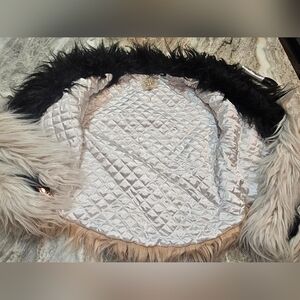 Make a bold statement with this CHASER faux fur moto jacket. Designed in a unique beige, black, and ivory colorblock with long shaggy faux fur and sleek faux leather trim. Fully lined in quilted satin for warmth and comfort. The perfect statement coat for winter nights or festival looks.