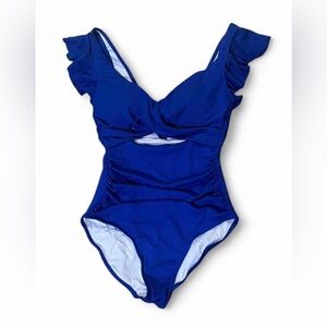 B2Prity One Piece Swimsuit Sz M Ruffle Sleeves Cutout Textured Tummy Control