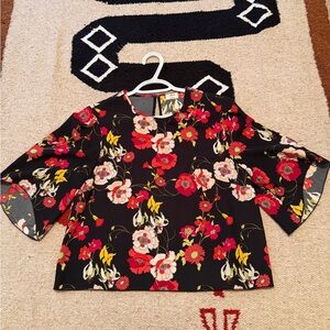 Chic cropped blouse with bold floral print. Features vibrant colors and elegant design. Ideal for any occasion. This is SO cute but cropped tops are not my best friend, haha. Worn once.