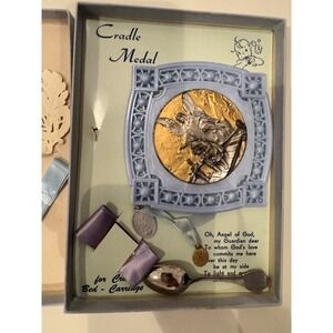 Vintage Catholic Cradle Medal Guardian Angel Baby Crib Set w/ Box