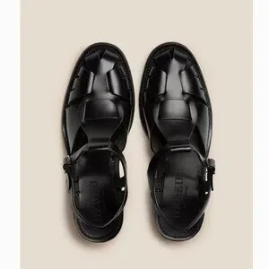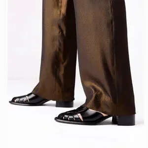 Round-toe heeled fisherman sandal with cut-out front detailing, crafted from Spanish calf leather.