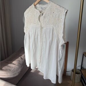 Limited Edition Embroidered Lace Top, Oyster White, Zara, L, NWT