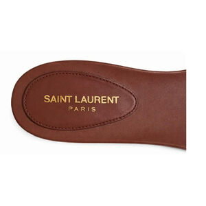 New YSL/ Saint Laurent Brown Gold Tribute Flat Sandals Size 7.5/37.5