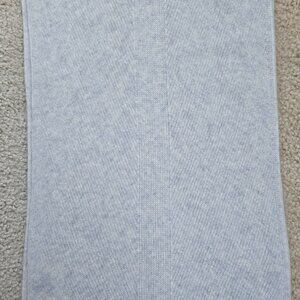 Fine ribbed cashmere scarf. The ribbing forms a decorative pattern. The ends are intentionally flared--drapes nicely. No holes, no pilling, no damage, no pet hair, no odors.