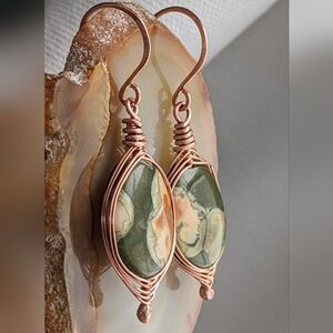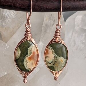Exotic Rainforest Jasper Earrings Artisan Crafted Copper Jewelry