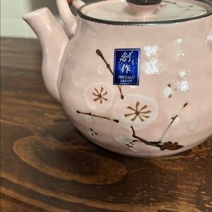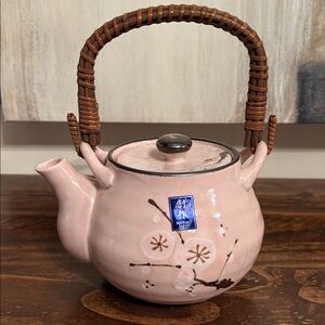 Vintage Sousaku Japan Ceramic Pink Teapot Cherry Blossoms Bamboo Handle