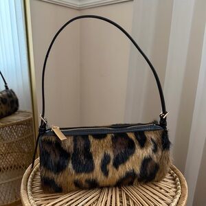 H&M Leopard Print Faux Fur Barrel Shoulder Bag