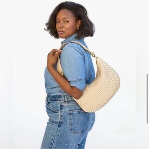 Clare V Moyen Messenger Bag in cream woven checker.