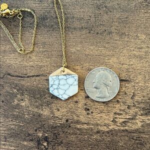This stylish necklace features a hexagon-shaped white marble pendant with a delicate gold chain, perfect for any occasion.