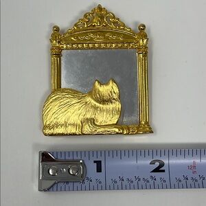 VINTAGE BROOCHES AND BOX BUNDLE OF 6 CAT HORSE AIRPLANE SANTA CROSS GOLD SILVER