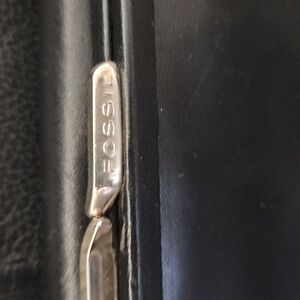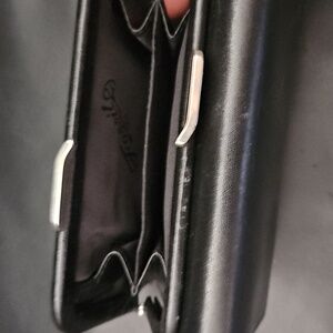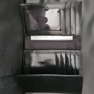 Fossil 100% Black Leather Tri-fold Wallet Snap Button Multiple Slides Compact.
