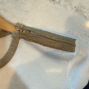 * Gold zipper at shoulder with gold metallic trim