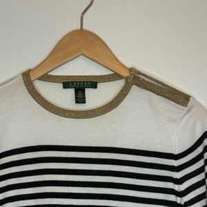 NEW Lauren Ralph Lauren Pullover Navy Striped Sweater Gold Metallic Trim