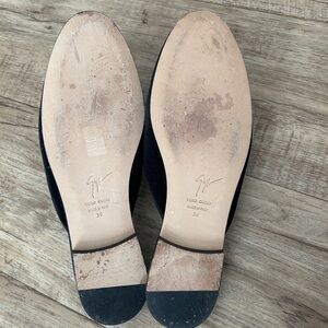 These Giuseppe Zanotti mules feature a luxurious black velvet upper with a sleek pointed toe design. Women's size 39 (US 8.5). Made in Italy. The slip-on style offers both elegance and comfort, making them ideal for versatile occasions. Experience the perfect blend of sophistication and ease with these stylish shoes.