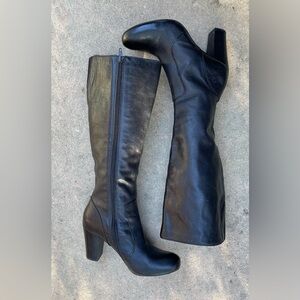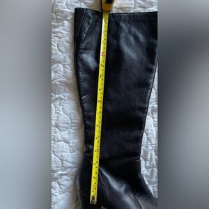 Beautiful EUC soft black leather knee high boots. 3.5” high heel. Zoom in on photos for condition and measurements